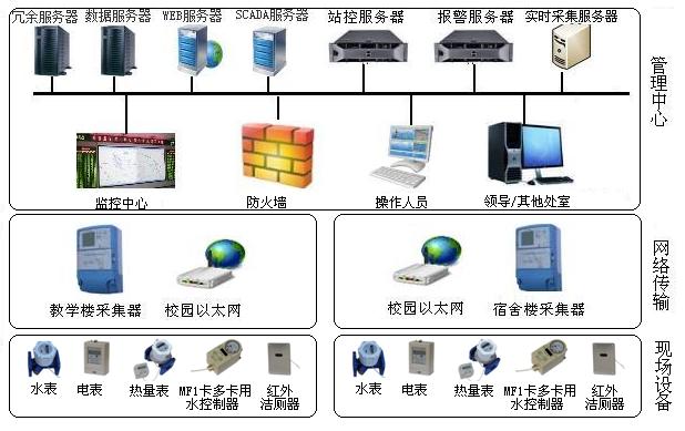 系統(tǒng)概述 基于物聯(lián)網(wǎng)、大數(shù)據(jù)、云計(jì)算及移動(dòng)互聯(lián)網(wǎng)等新興技術(shù)的快速發(fā)展和不斷融合,新天科技順應(yīng)市場(chǎng)潮流,在自身現(xiàn)有的技術(shù)基礎(chǔ)上,開拓性地開發(fā)推出針對(duì)校園中電量消耗、燃料消耗、熱量消耗、冷量消耗及水資源消耗的數(shù)據(jù)采集、傳輸及統(tǒng)計(jì)分析的智慧校園節(jié)能監(jiān)管系統(tǒng)。該系統(tǒng)使學(xué)校能夠有效建立節(jié)能工作的長(zhǎng)久機(jī)制,推進(jìn)和深化節(jié)約型校園的建設(shè),實(shí)現(xiàn)校園建筑設(shè)施能源高效利用和管理系統(tǒng)的建設(shè)。 智慧校園節(jié)能監(jiān)管系統(tǒng)由計(jì)量表具、數(shù)據(jù)采集及轉(zhuǎn)換裝置、數(shù)據(jù)傳輸網(wǎng)絡(luò)、數(shù)據(jù)中轉(zhuǎn)站、數(shù)據(jù)服務(wù)器、管理軟件組成。該系統(tǒng)主要用于對(duì)學(xué)校建筑能耗進(jìn)行分類分項(xiàng)計(jì)量、數(shù)據(jù)統(tǒng)計(jì)、數(shù)據(jù)分析、節(jié)能分析及節(jié)能指標(biāo)管理。系統(tǒng)具備能耗數(shù)據(jù)實(shí)時(shí)采集和通訊、遠(yuǎn)程傳輸、自動(dòng)分類統(tǒng)計(jì)、數(shù)據(jù)分析、指標(biāo)比對(duì)、圖表顯示、報(bào)表管理、數(shù)據(jù)儲(chǔ)存、故障自動(dòng)上傳等功能,為校園節(jié)能建設(shè)提供管理依據(jù)。